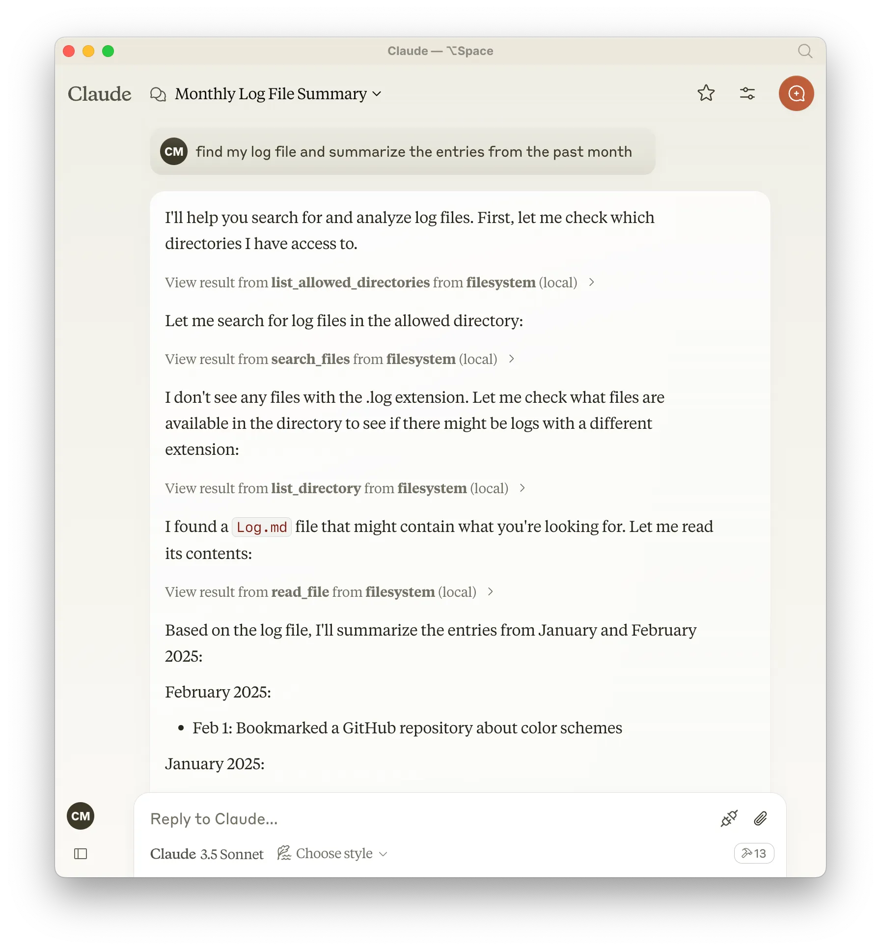 I often think of the web as the world’s great distribution mechanism (along with the post office), but it lacks the ability to interface with anything outside the browser. This is largely by design and in most cases a helpful feature! But it certainly limits the power of any general purpose agent distributed as a web app.