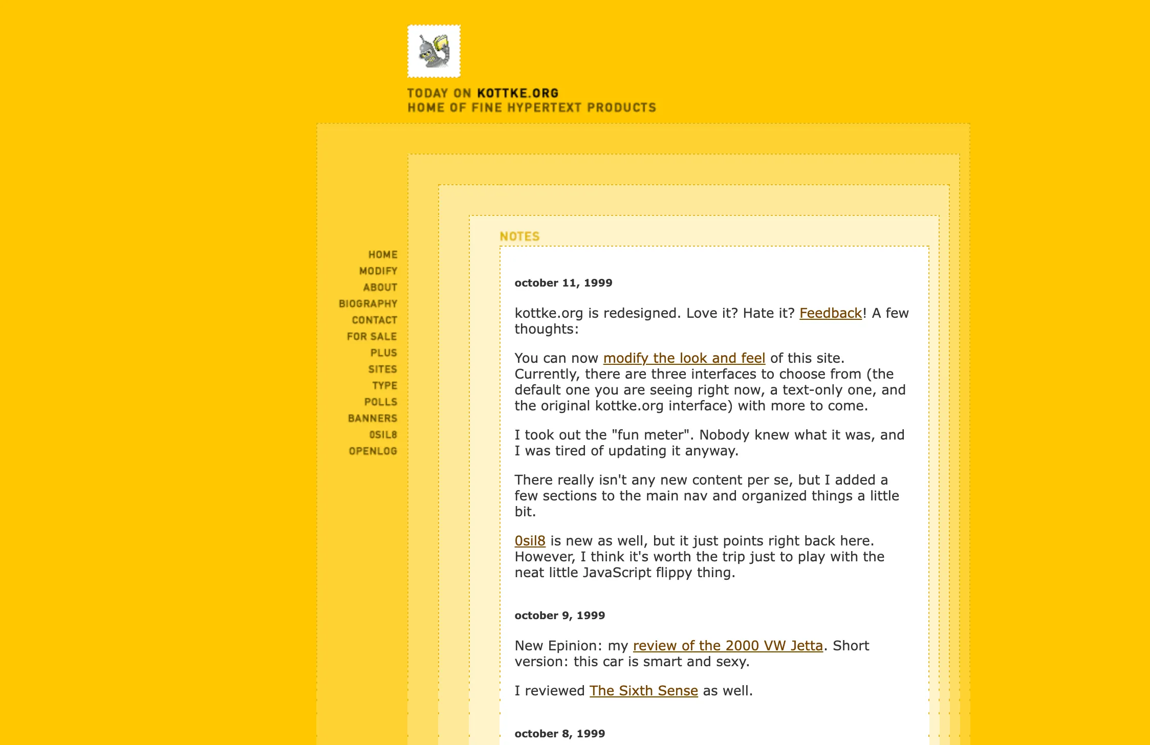 It’s hard to communicate how grateful I feel for this era of experimentation on the web, and specifically for Jason Kottke’s influence on me as a designer. The past 25 years have been a special time to experience the internet.